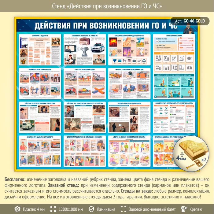 Стенд «Действия при возникновении ГО и ЧС» (GO-46-GOLD) в Тюмени купить