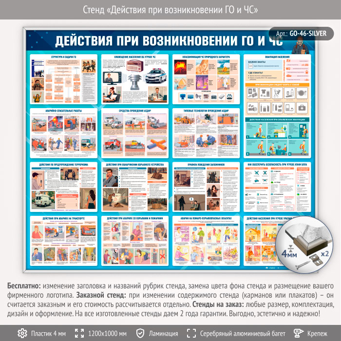 Стенд «Действия при возникновении ГО и ЧС» (GO-46-SILVER) в Тюмени купить