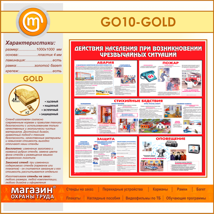 Стенд «Действия населения при возникновении чрезвычайных ситуаций» (GO-10-GOLD) в Тюмени купить