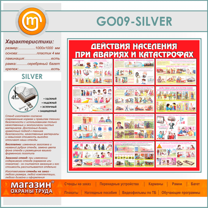 Стенд «Действия населения при авариях и катастрофах» (GO-09-SILVER) в Тюмени купить