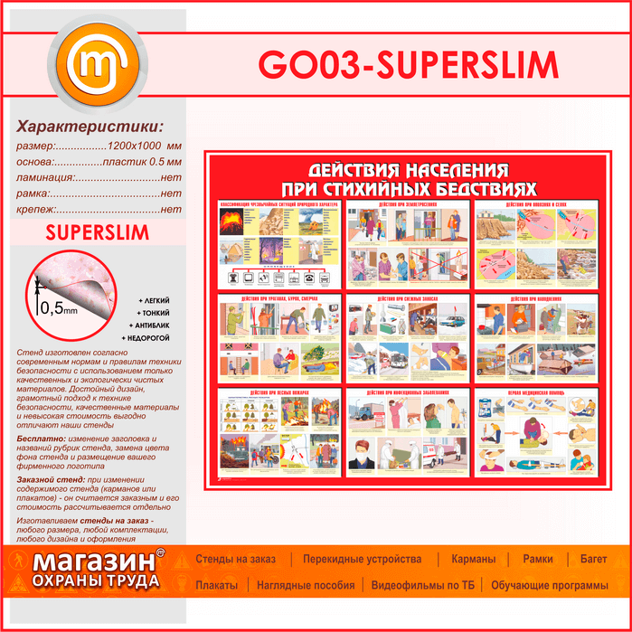 Стенд «Действия населения при стихийных бедствиях» (GO-03-SUPERSLIM) в Тюмени купить