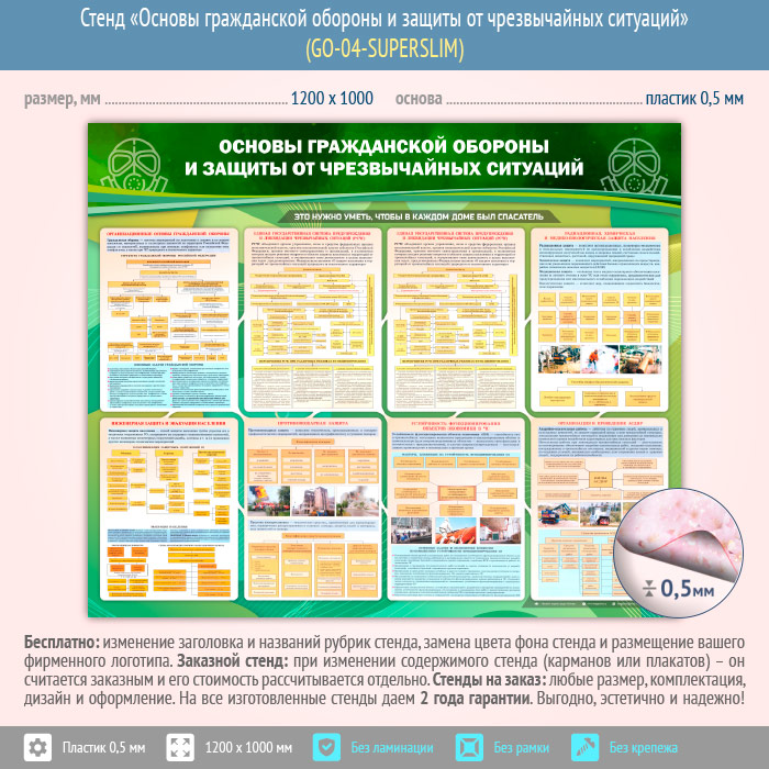 Стенд «Основы гражданской обороны и защиты от чрезвычайных ситуаций» (GO-04-SUPERSLIM) в Тюмени купить