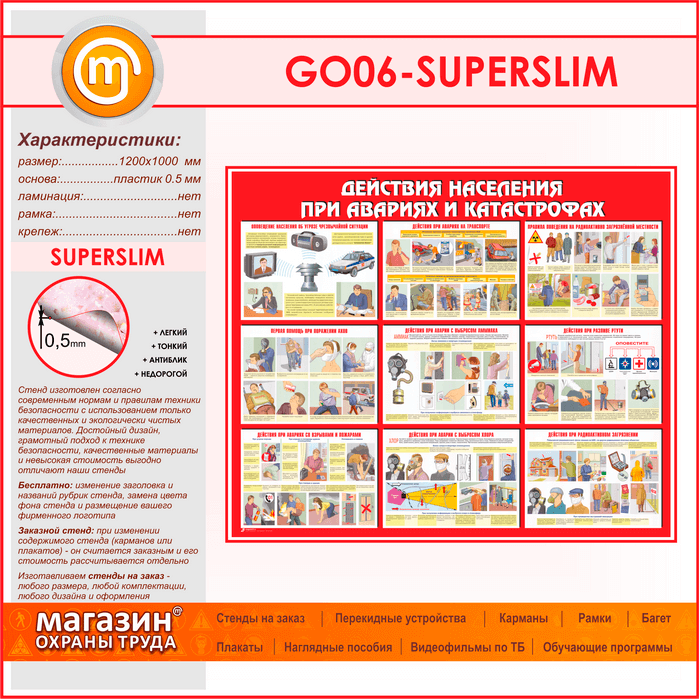 Стенд «Действия населения при авариях и катастрофах» (GO-06-SUPERSLIM) в Тюмени купить