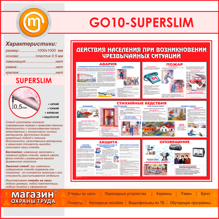 Стенд «Действия населения при возникновении чрезвычайных ситуаций» (GO-10-SUPERSLIM) в Тюмени купить