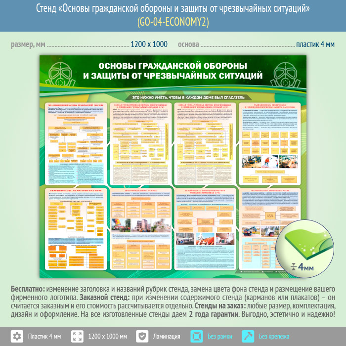 Стенд «Основы гражданской обороны и защиты от чрезвычайных ситуаций» (GO-04-ECONOMY2) в Тюмени купить