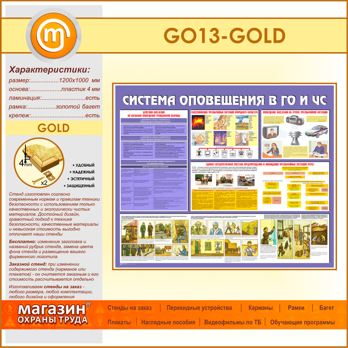 Стенд «Система оповещения в ГО и ЧС» (GO-13-GOLD) в Тюмени купить