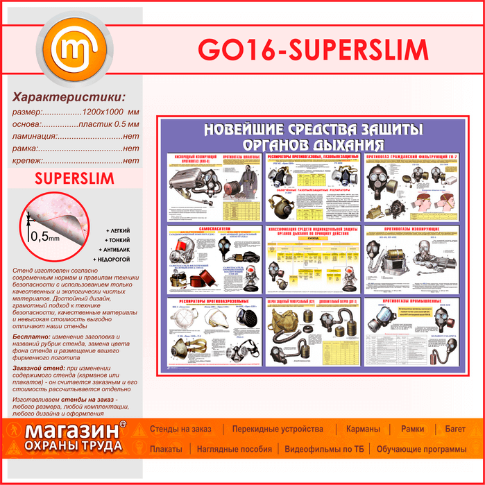 Стенд «Новейшие средства защиты органов дыхания» (GO-16-SUPERSLIM) в Тюмени купить