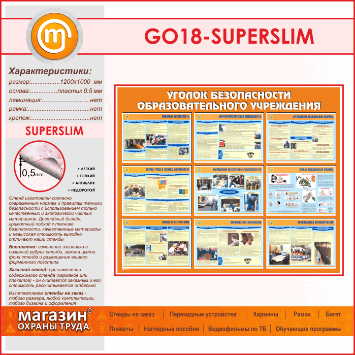 Стенд «Уголок безопасности образовательного учреждения» (GO-18-SUPERSLIM) в Тюмени купить