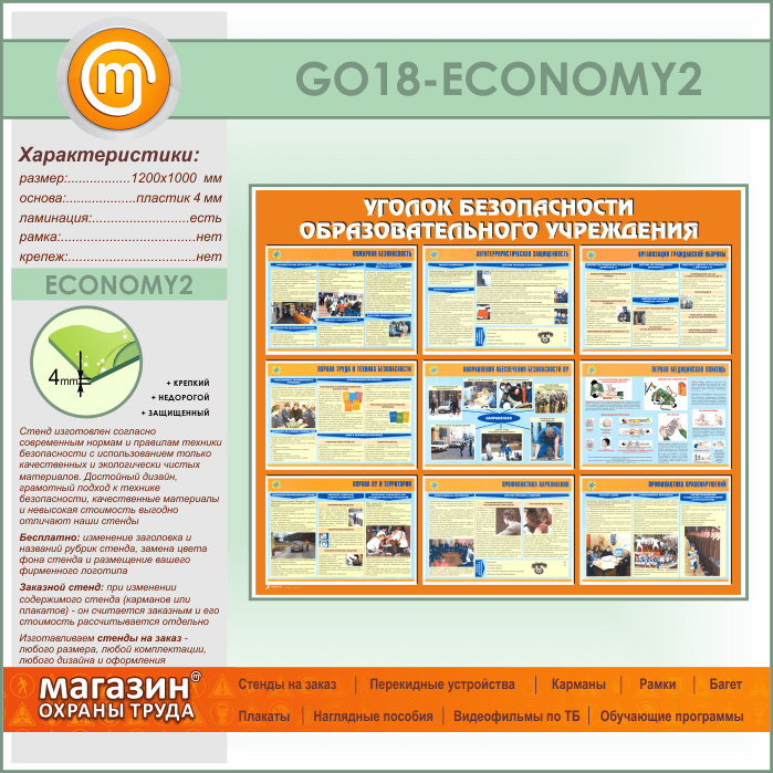 Стенд «Уголок безопасности образовательного учреждения» (GO-18-ECONOMY2) в Тюмени купить