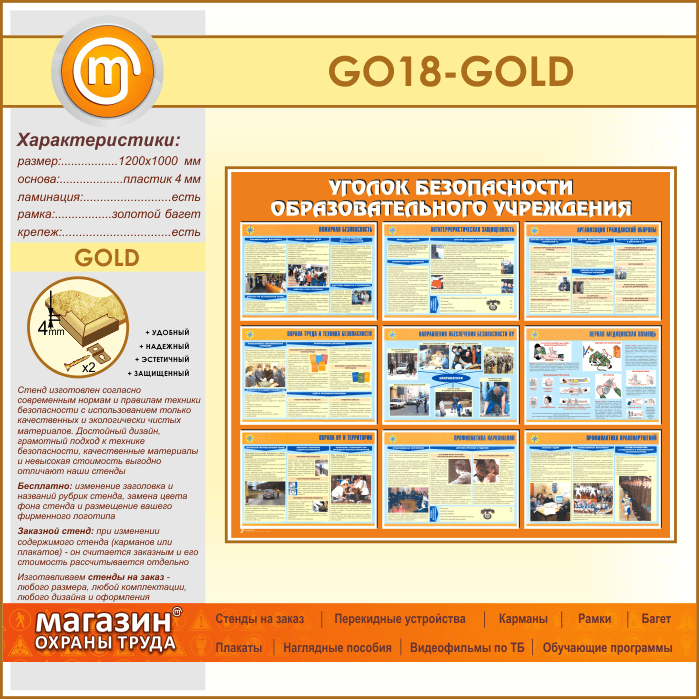 Стенд «Уголок безопасности образовательного учреждения» (GO-18-GOLD) в Тюмени купить