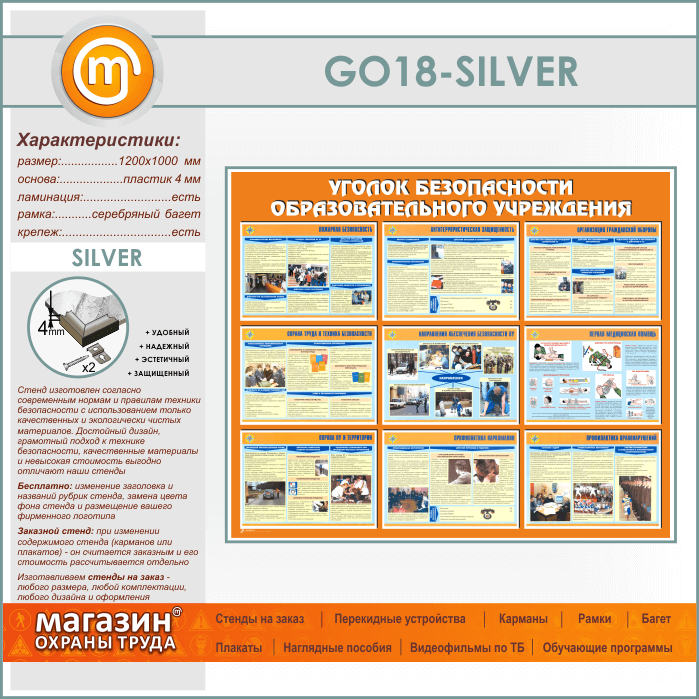 Стенд «Уголок безопасности образовательного учреждения» (GO-18-SILVER) в Тюмени купить