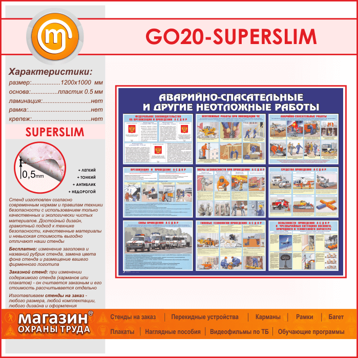 Стенд «Аварийно-спасательные и другие неотложные работы» (GO-20-SUPERSLIM) в Тюмени купить