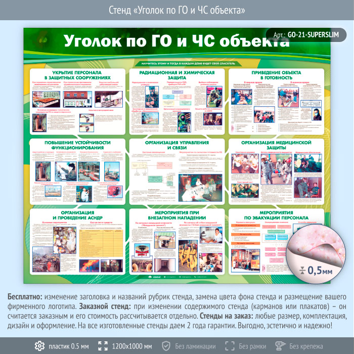 Стенд «Уголок по ГО и ЧС объекта» (GO-21-SUPERSLIM) в Тюмени купить