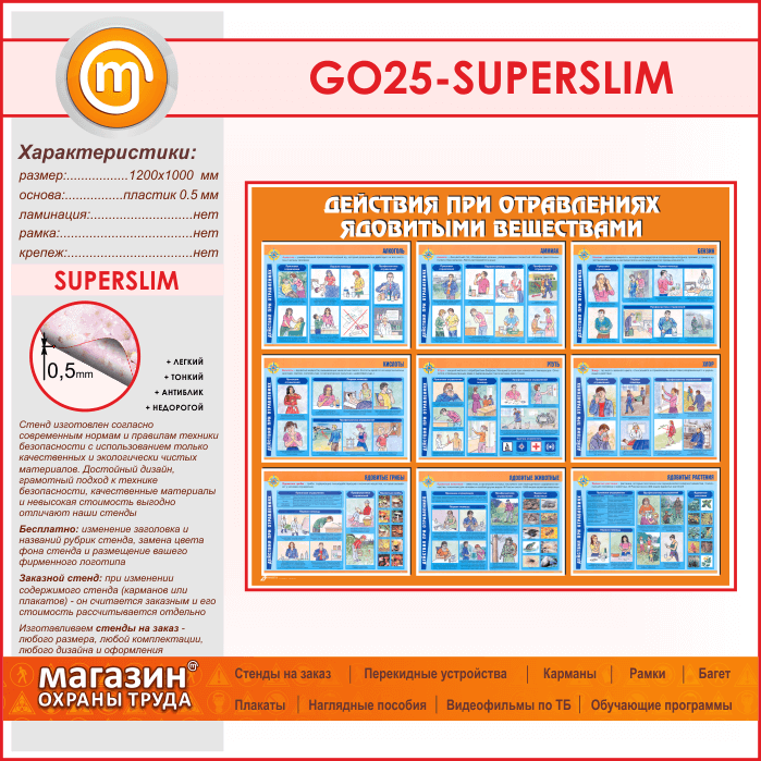 Стенд «Действия при отравлении ядовитыми веществами» (GO-25-SUPERSLIM) в Тюмени купить
