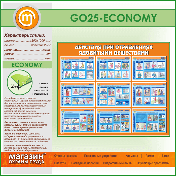 Стенд «Действия при отравлении ядовитыми веществами» (GO-25-ECONOMY) в Тюмени купить