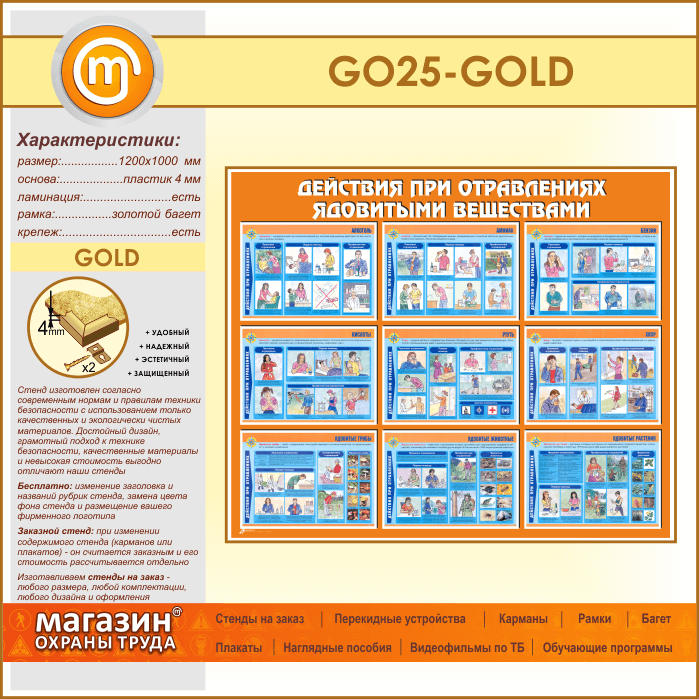 Стенд «Действия при отравлении ядовитыми веществами» (GO-25-GOLD) в Тюмени купить