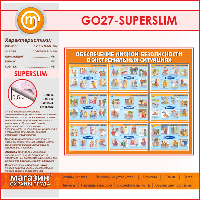 Стенд «Обеспечение личной безопасности в экстремальных ситуациях» (GO-27-SUPERSLIM) в Тюмени купить