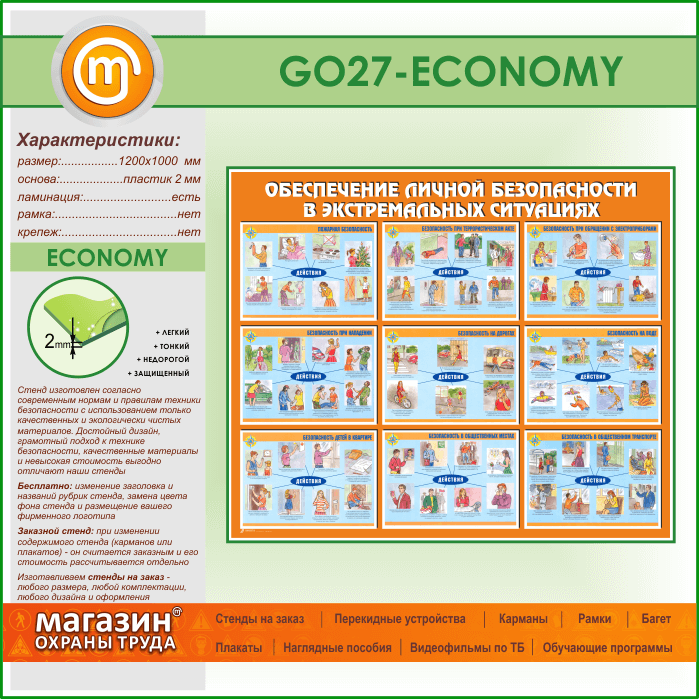 Стенд «Обеспечение личной безопасности в экстремальных ситуациях» (GO-27-ECONOMY) в Тюмени купить