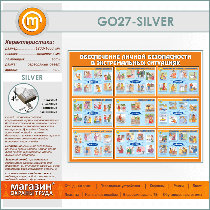 Стенд «Обеспечение личной безопасности в экстремальных ситуациях» (GO-27-SILVER) в Тюмени купить