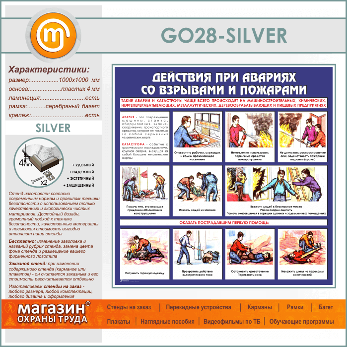 Стенд «Действия при авариях со взрывами и пожарами» (GO-28-SILVER) в Тюмени купить