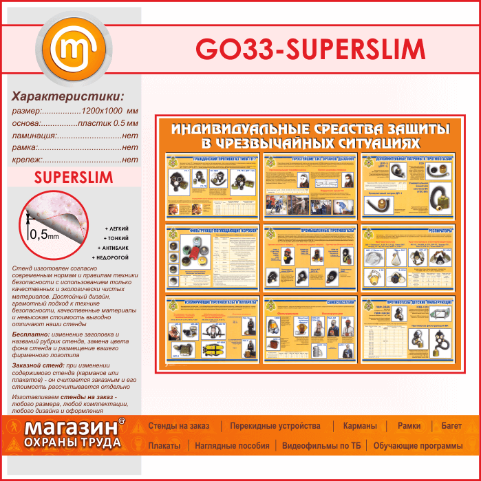 Стенд «Индивидуальные средства защиты в чрезвычайных ситуациях» (GO-33-SUPERSLIM) в Тюмени купить