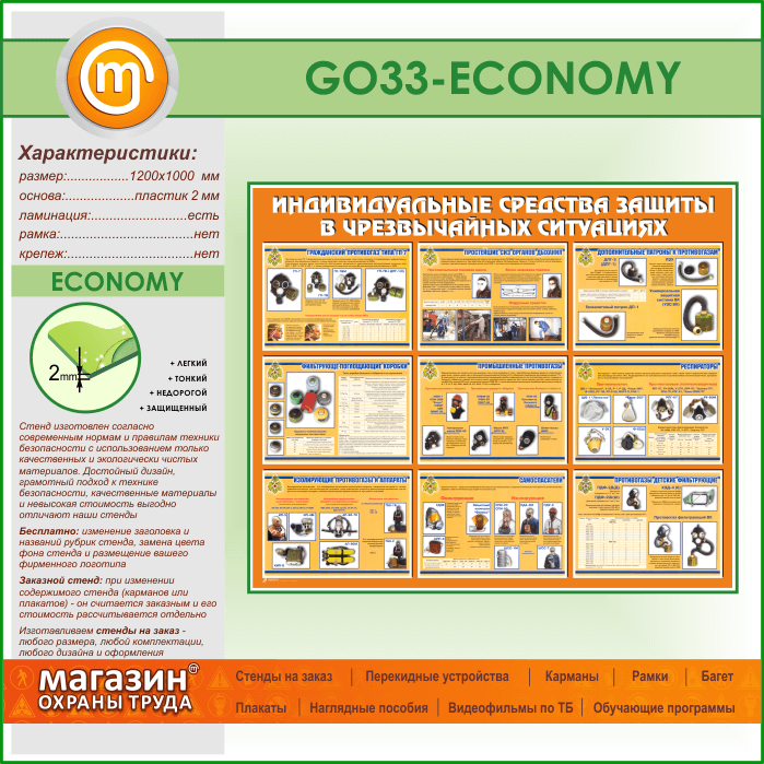 Стенд «Индивидуальные средства защиты в чрезвычайных ситуациях» (GO-33-ECONOMY) в Тюмени купить