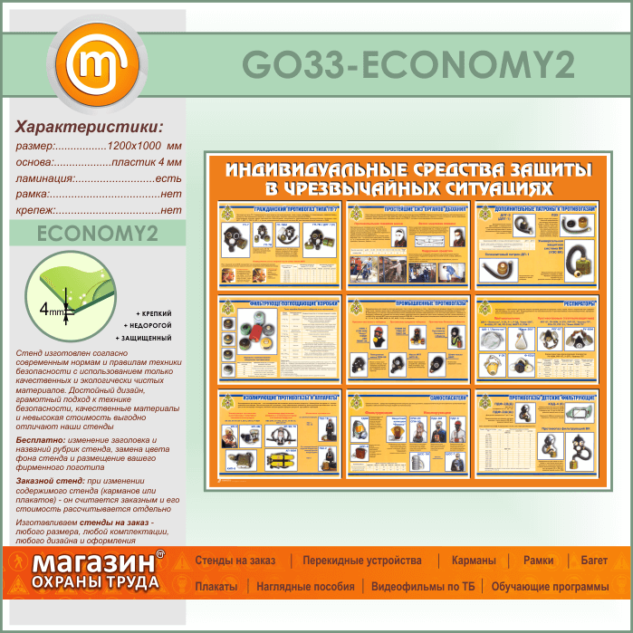Стенд «Индивидуальные средства защиты в чрезвычайных ситуациях» (GO-33-ECONOMY2) в Тюмени купить
