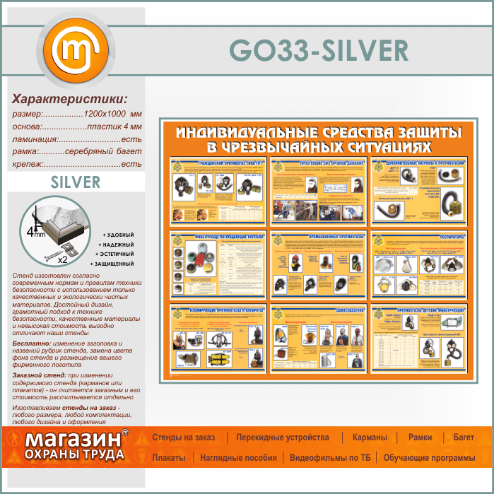 Стенд «Индивидуальные средства защиты в чрезвычайных ситуациях» (GO-33-SILVER) в Тюмени купить