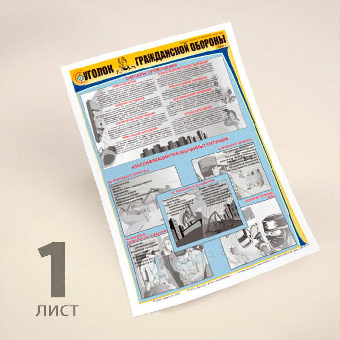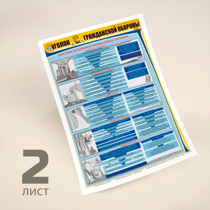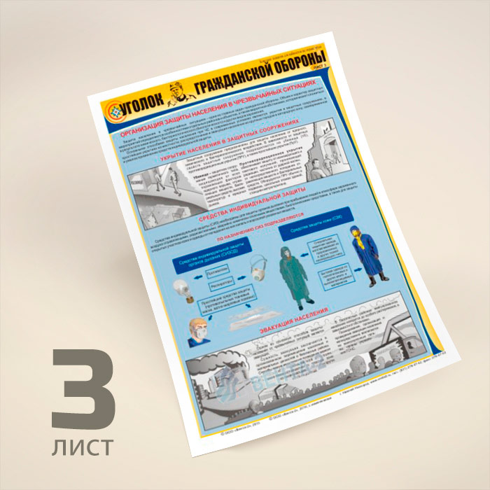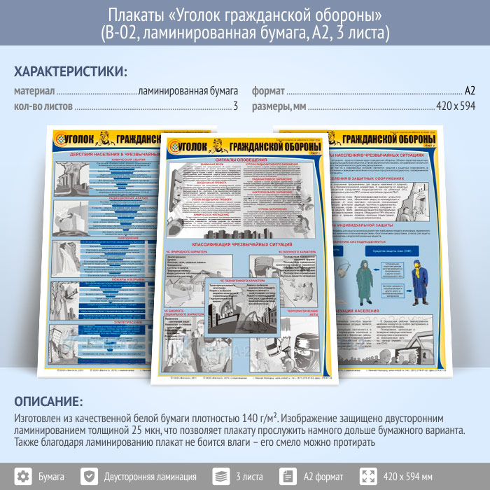 Плакаты «Уголок гражданской обороны» (В-02, ламинированная бумага, А2, 3 листа) в Тюмени купить