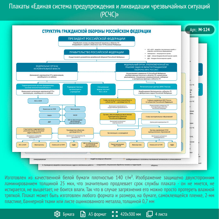 Плакаты «Единая система предупреждения и ликвидации чрезвычайных ситуаций (РСЧС)» (М-124, ламинированная бумага, А3, 4 листа) в Тюмени купить