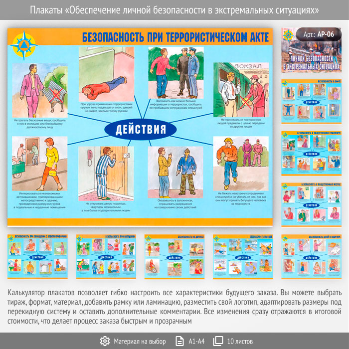 Плакаты «Обеспечение личной безопасности в экстремальных ситуациях» (АР-06, 10 листов) в Тюмени купить