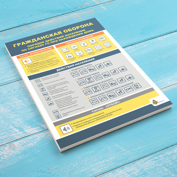 Плакат «Гражданская оборона. Порядок действия населения по сигналу ГО при нахождении дома» (МЧС-04, 1 лист) в Тюмени купить