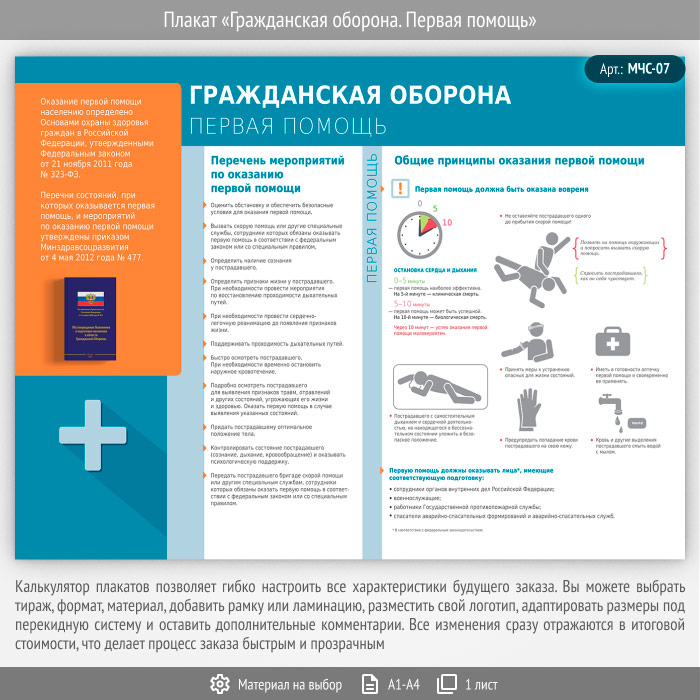 Плакат «Гражданская оборона. Первая помощь» (МЧС-07, 1 лист) в Тюмени купить