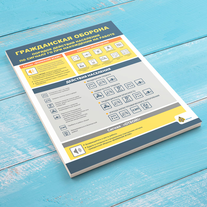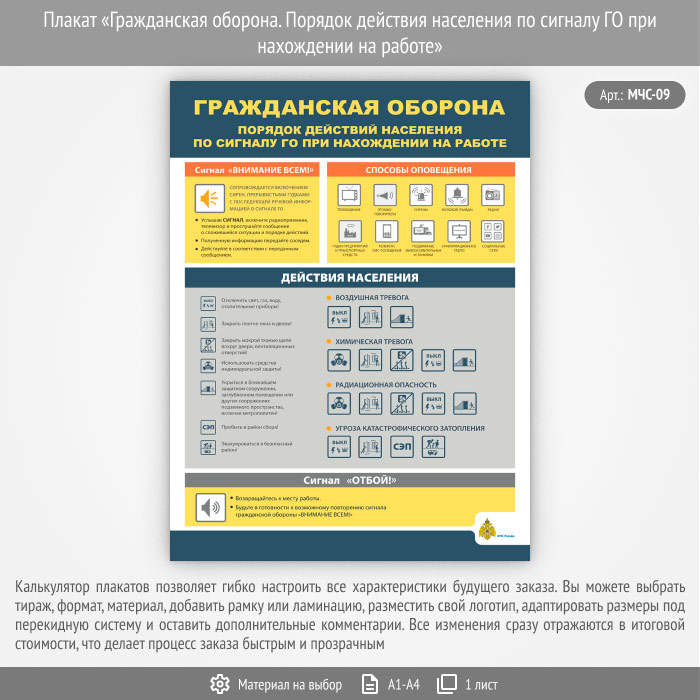 Плакат «Гражданская оборона. Порядок действия населения по сигналу ГО при нахождении на работе» (МЧС-09, 1 лист) в Тюмени купить