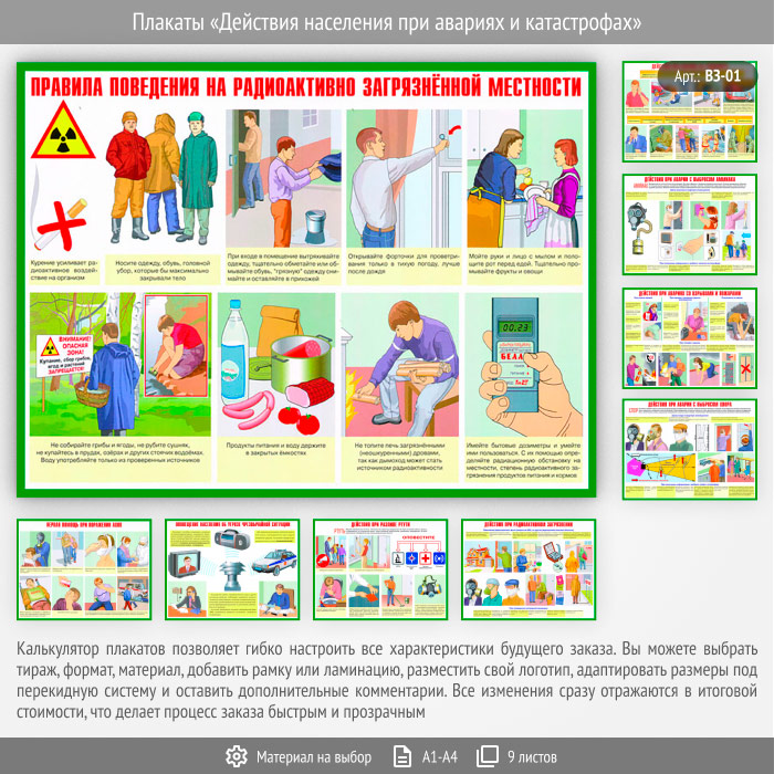 Плакаты «Действия населения при авариях и катастрофах» (ВЗ-01, 9 листов) в Тюмени купить