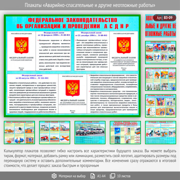 Плакаты «Аварийно-спасательные и другие неотложные работы» (ВЗ-09, 9 листов) в Тюмени купить