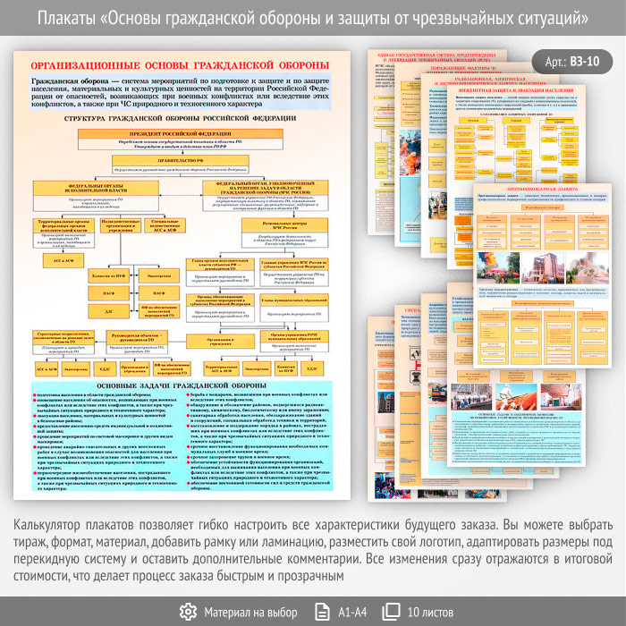 Плакаты «Основы гражданской обороны и защиты от чрезвычайных ситуаций» (ВЗ-10, 10 листов) в Тюмени купить