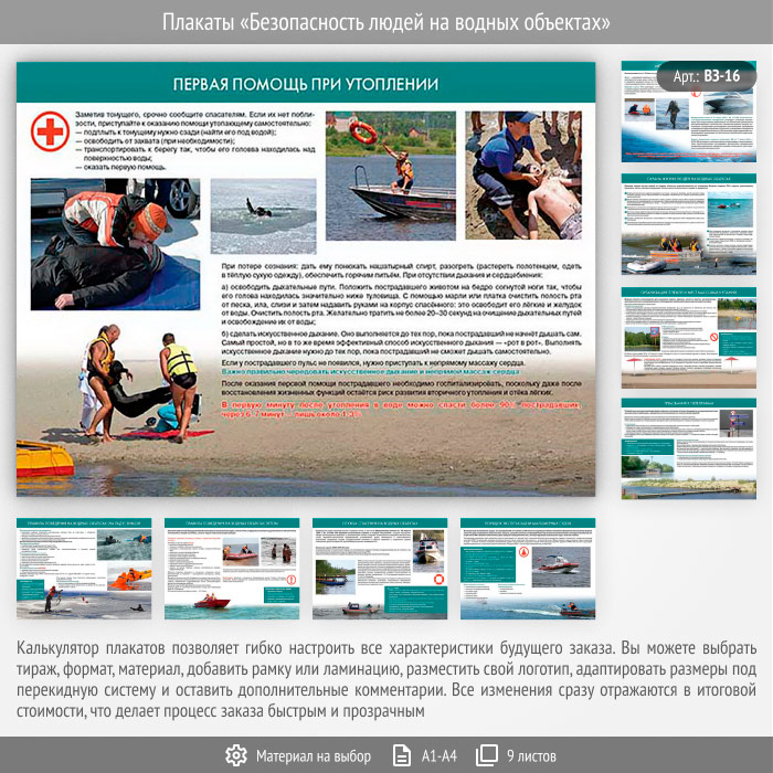 Плакаты «Безопасность людей на водных объектах» (ВЗ-16, 9 листов) в Тюмени купить