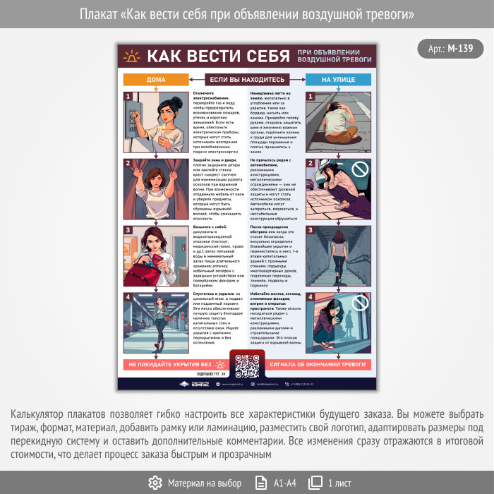 Плакат «Как вести себя при объявлении воздушной тревоги» с QR (М-139, 1 лист) в Тюмени купить