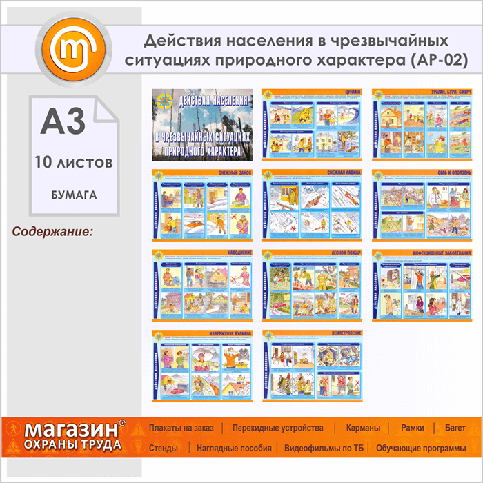 Плакаты «Действия населения в чрезвычайных ситуациях природного характера» (АР-02, бумага, А3, 10 листов) в Тюмени купить