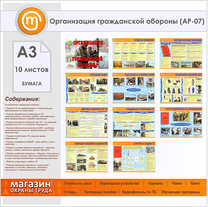 Плакаты «Организация гражданской обороны» (АР-07, бумага, А3, 10 листов) в Тюмени купить