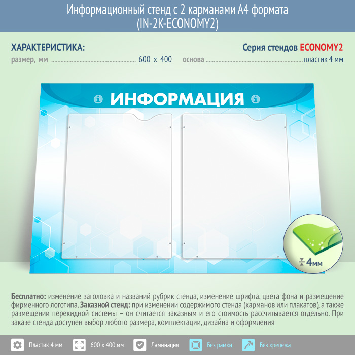 Информационный стенд с 2 карманами А4 формата (IN-2K-ECONOMY2) в Тюмени купить