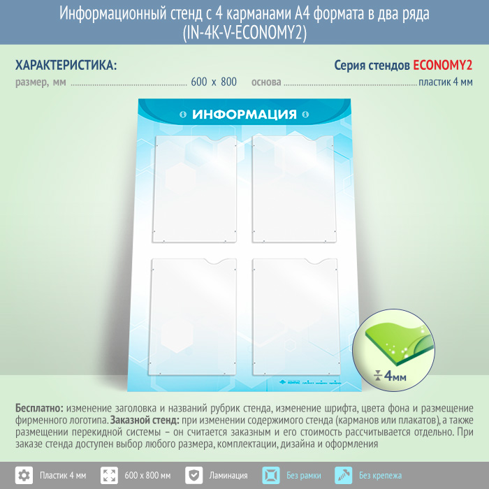 Информационный стенд с 4 карманами А4 формата в два ряда (IN-4K-V-ECONOMY2) в Тюмени купить