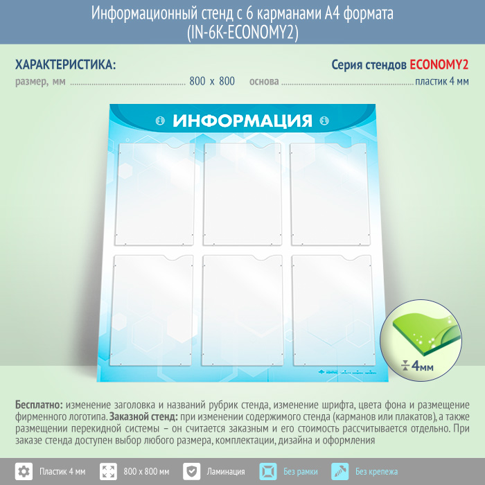 Информационный стенд с 6 карманами А4 формата (IN-6K-ECONOMY2) в Тюмени купить