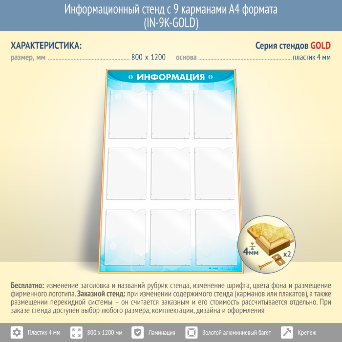 Информационный стенд с 9 карманами А4 формата (IN-9K-GOLD) в Тюмени купить