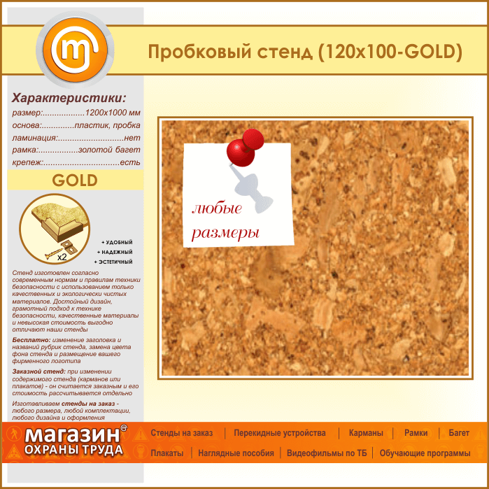 Пробковая доска, 120х100 см (IN-05-GOLD) в Тюмени купить
