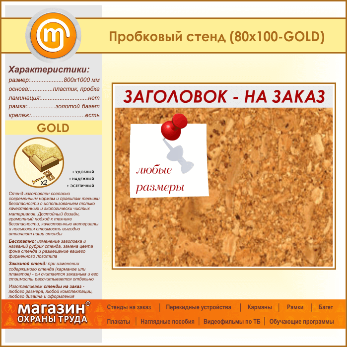 Пробковая доска с заголовком, 100х80 см (IN-06-GOLD) в Тюмени купить