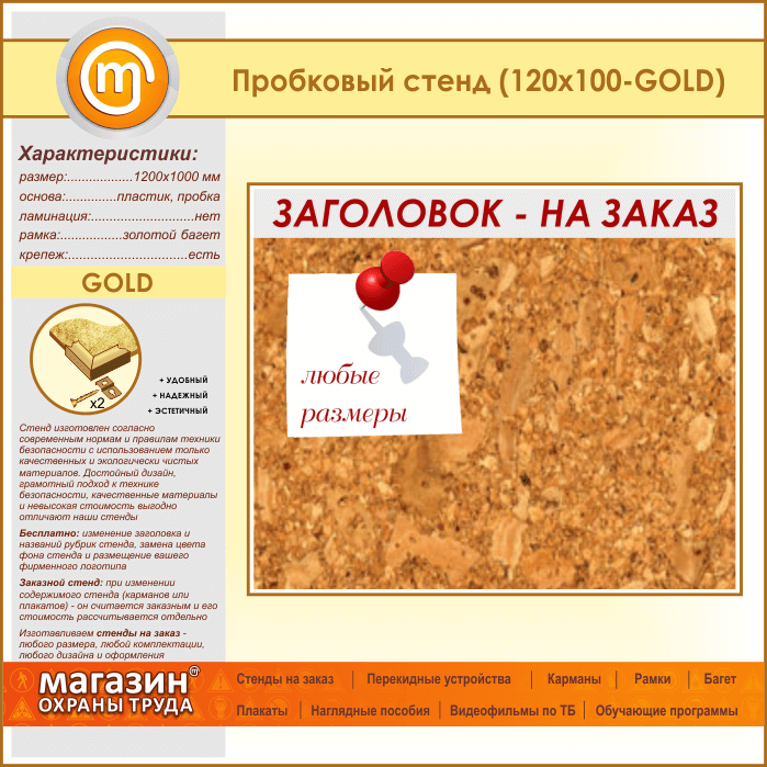 Пробковая доска с заголовком, 120х100 см (IN-06-GOLD) в Тюмени купить