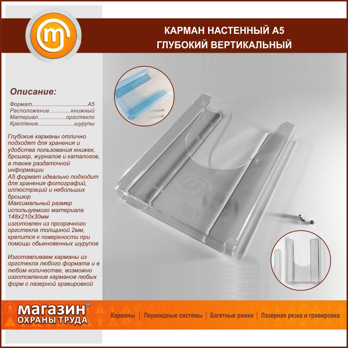 Карман настенный А5 объемный вертикальный в Тюмени купить