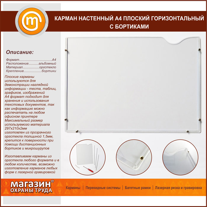 Карман настенный А4 плоский горизонтальный с бортиками в Тюмени купить